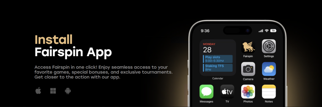 While Fairspin utilizes a high-performance PWA rather than a traditional app store download, our mobile-optimized platform offers a seamless experience for players on the move. Whether using Android or iOS devices, the mobile version ensures you can play anywhere, anytime.
